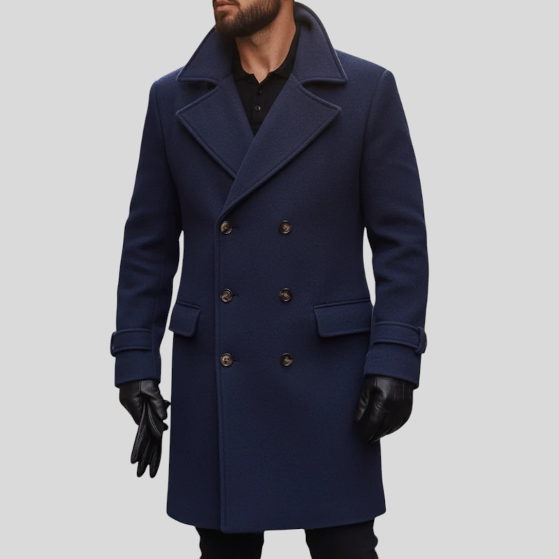 Marcello – Vinterfrakke i Uld til Herre med Dobbeltradet Lukning