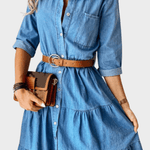 Elara | Kjole udstråler tidløs elegance gennem omtanke for håndværk og materialer. Elara™ er en solid sommerkjole, skabt til kvinder der ønsker komfort uden at gå på kompromis med stilen. Den klassiske silhuet og denim-inspirerede design giver en moderne, selvsikker fremtoning til aktive dage, spontane udflugter eller afslappede stunder. Kjolen forener holdbarhed og blødhed i stoffet, mens A-linjet snit flatterer talje og naturlige kurver uden at begrænse bevægelsen. Omhyggeligt udvalgte materialer og detaljer holder over tid, og Elara leverer langvarig værdi gennem tidløs stil og gennemførte detaljer.