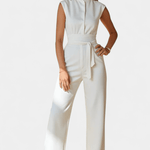 - Designdetaljer: Den ærmeløse pasform, høje krave og brede ben giver et tidløst, sofistikeret look.