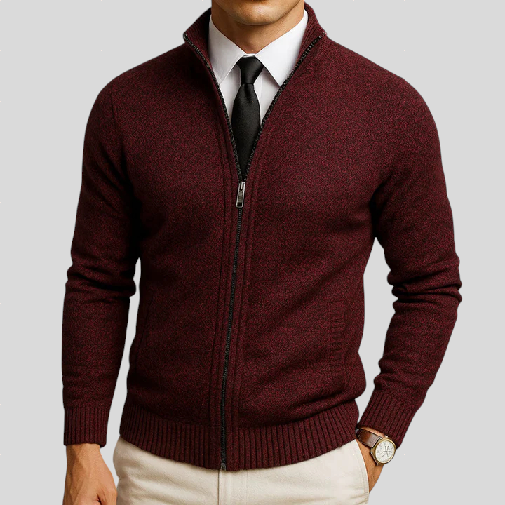 Denne cardigan kombinerer italiensk elegance med førsteklasses komfort. Fremstillet af blød og kvalitetsstrik giver den en perfekt balance mellem varme og åndbarhed. Takket være det moderne snit med lynlås er den nem at kombinere med både skjorte og T-shirt, hvilket gør den til et ideelt valg til kontoret, fritiden eller en aften ude. Hver detalje udstråler opmærksomhed på stil og kvalitet.