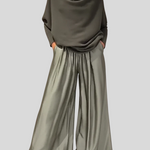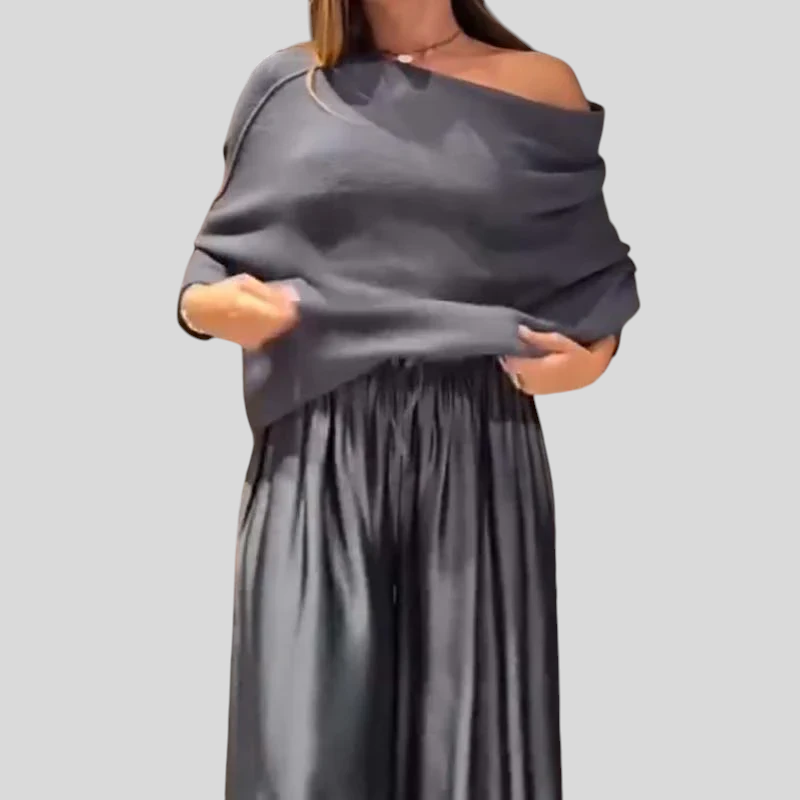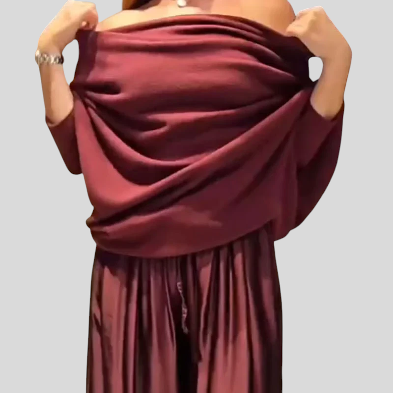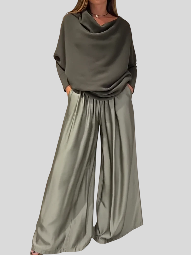 Et stilfuldt sæt designet til kvinder, der ønsker et sofistikeret look uden at gå på kompromis med komforten. Det flydende snit og de bløde linjer skaber et harmonisk udtryk, der bevæger sig smukt med kroppen. Perfekt til både hverdagsbrug, middagsselskaber eller stilfulde øjeblikke, hvor enkelhed og elegance går hånd i hånd.