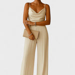 Med Inger | Elegant overall udstråler sofistikeret håndværk og tidløs prestige. Premium materialer møder gennemført konstruktion, hvor hver detalje udføres med præcision; en begrænset produktion skaber eksklusivitet og varig samlerværdi. Inger fremstilles i små, omhyggeligt kuraterede partier, hvor tradition møder moderne teknik for at bevare drapering og bevægelse. Denne Inger-linje understreger vores værdier: ansvarlig materialeanvendelse, tidløse snit og en konstruktion, der blot bliver mere karakterfuld med tiden. Den lette halsudskæring og de sarte stropper fremhæver dekolletagen diskret, mens den markerede talje og brede bukseben danner en slank, flydende silhuet. Perfekt til bryllupper og elegante begivenheder med stringent dresscode—og samtidig behagelig i længere tids brug. En tidløs alsidighed gør Inger til en stilinvestering, der ikke kræver konstant tilpasning og som væver sig ind i kommende sæsoner.