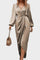 - Materiale og finish: Flydende stof med let glans, der falder som silke og afspejler høj håndværksstandard.