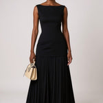 Olivia | Plisseret Kjole udstråler en balance mellem elegant særpræg og moderne snit. Den slanke, ærmeløse overdel fremhæver taljen, mens den flydende plisserede nederdel bevæger sig med hvert skridt og skaber en sofistikeret silhuet. Håndværket kommer til udtryk i de rene linjer og den præcise plissering, som bevarer sin struktur sæson efter sæson. Olivia er mere end en kjole; det er en garderobeinvestering, der fastholder sin karakter gennem sæsonerne og tilføjer en tidløs samlerappel til enhver garderobe. Tilgængelig i begrænset antal, og bærer en fortjent arv af håndværk og omtanke fra vores værksted. En investering i kvalitet, der efterligner trend uden at miste sin betydning.