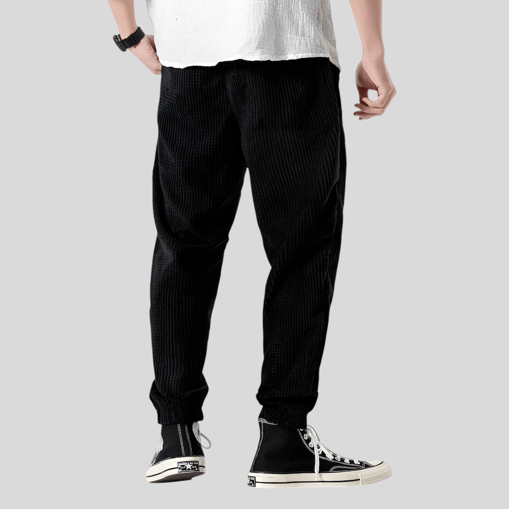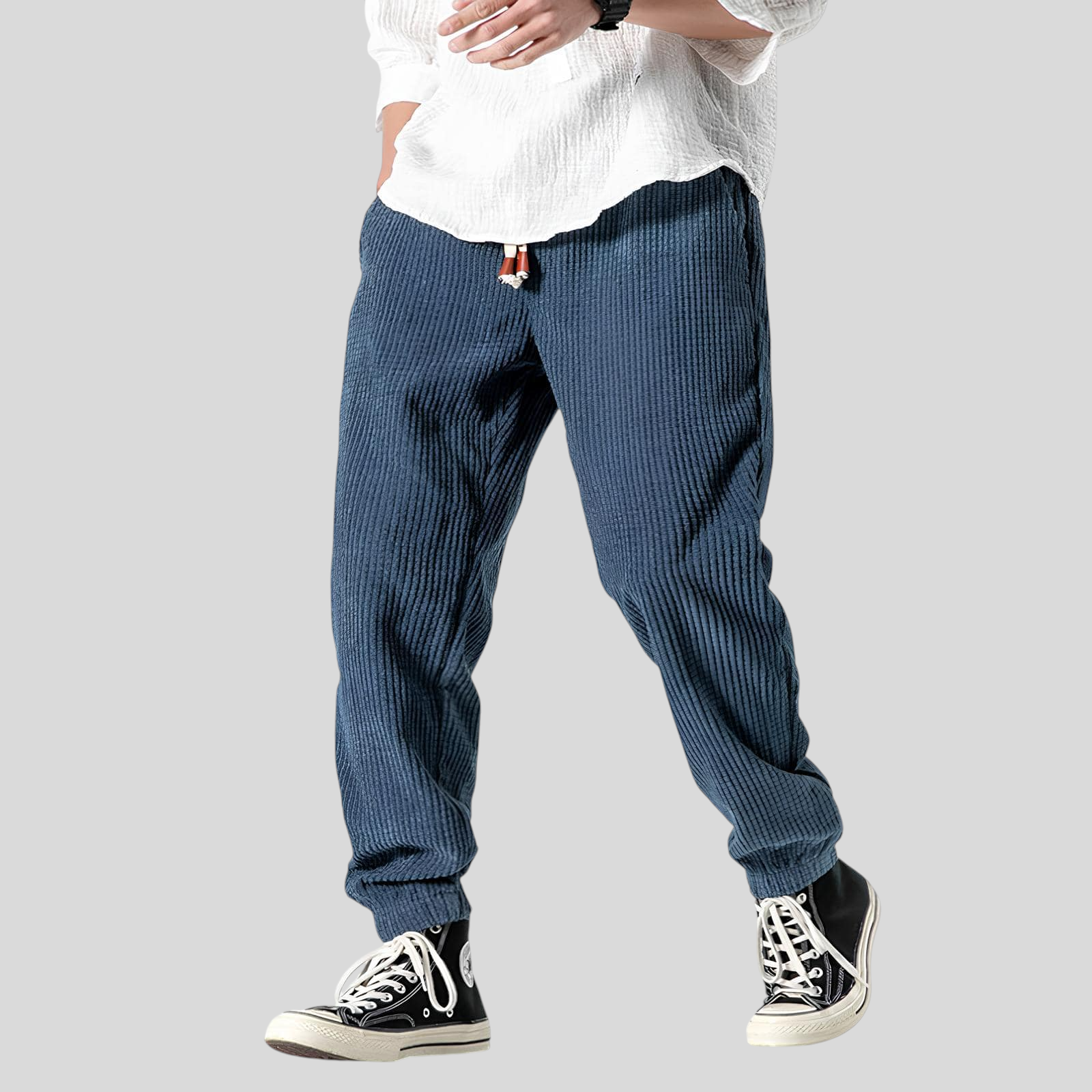 Disse bukser er designet til mænd, der ønsker et afslappet, men stilfuldt udtryk i hverdagen. Den karakteristiske tekstur giver et moderne look, mens den behagelige pasform og fleksible talje sikrer maksimal komfort og bevægelsesfrihed. Perfekte til både fritid, byliv og afslappede outfits med personlighed.