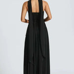 Trine | Maxi kjole er en investering i tidløs elegance og arven fra håndværk i højeste kvalitet. Den Off-shoulder-model har en struktureret overdel, der fremhæver silhuetten, mens en asymmetrisk talje og et draperet fuldt langskørt skaber en flydende bevægelse. Det aftagelige tørklæde giver tre looks—kravatt, løst bagpå eller foldet—og udvider mulighederne ved særlige begivenheder. Den høje splits og det elastiske, matte stof sikrer komfort uden at gå på kompromis med dristigheden. Kjolen er helt foret og har en diskret, skjult lynlås for et rent silhuet. Arven og kvaliteten i snit og materialer gør den til en investering, der bæres til bryllupper, galafester og aftener i byen og fastholder collector-værdien over tid. Begrænset antal i sæsonkollektionen understreger eksklusiviteten og collector-værdien.